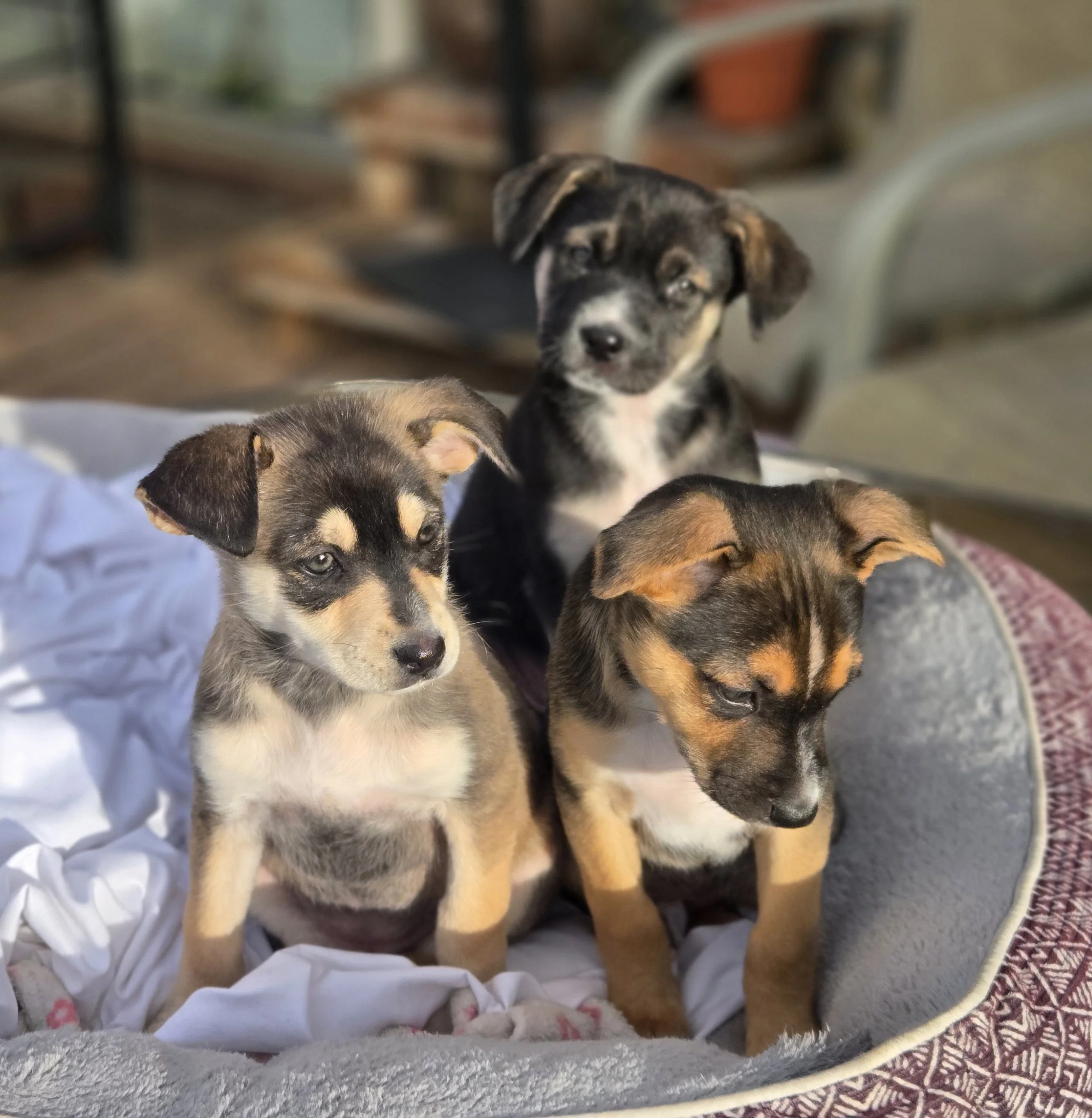 Puppies! These pups are well socialized with people, kids and other dogs. They are loving and playful and ready to find their forever homes. Their mom is a 20# terrier mix. The black one is a male, the other two female.